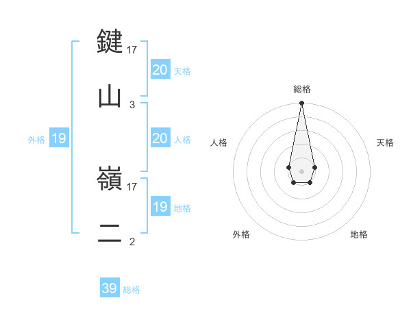 鍵山 嶺二さんを姓名の画数から五運を鑑定