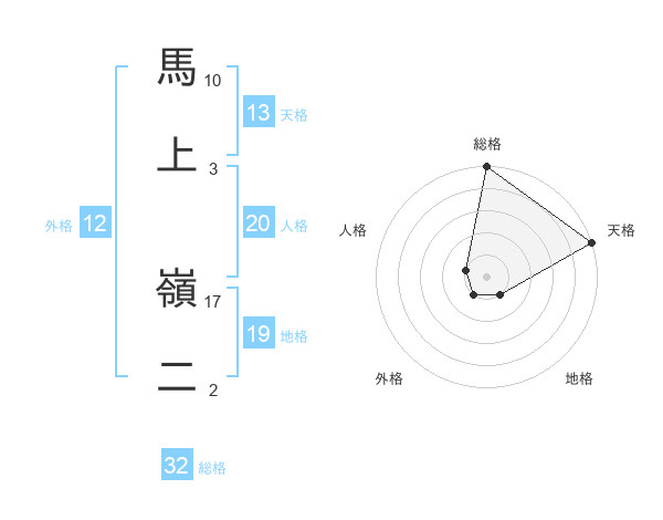 馬上 嶺二さんの総格は32画の5点!