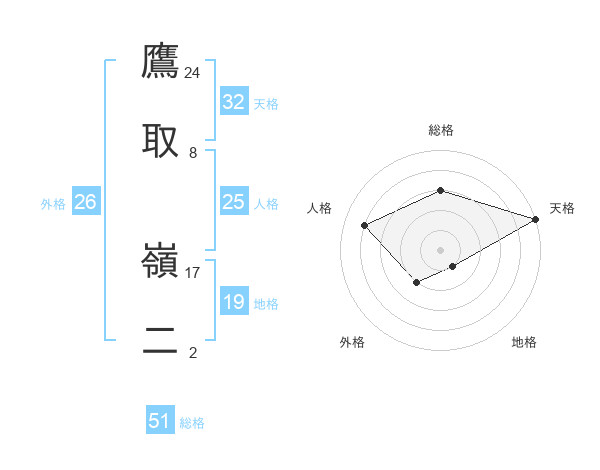 鷹取 嶺二さんを姓名の画数から五運を鑑定