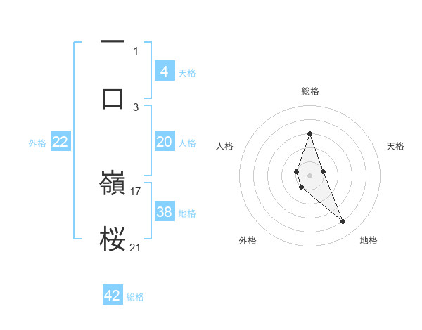 一口 嶺桜さんを姓名の画数から五運を鑑定
