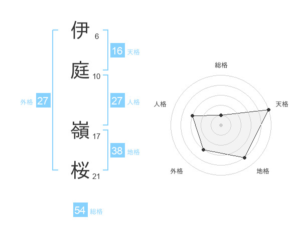 伊庭 嶺桜さんの天格は16画の5点!