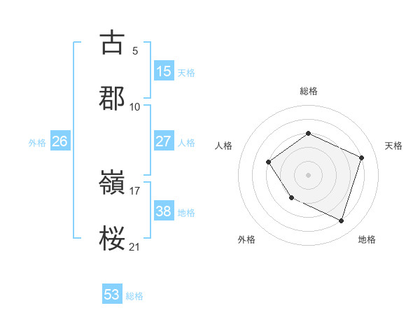 古郡 嶺桜さんを姓名の画数から五運を鑑定