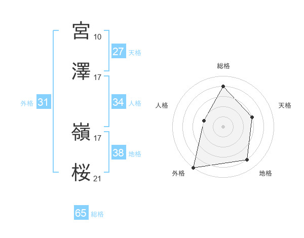 宮澤 嶺桜さんを姓名の画数から五運を鑑定