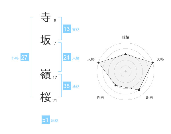 寺坂 嶺桜さんを姓名の画数から五運を鑑定