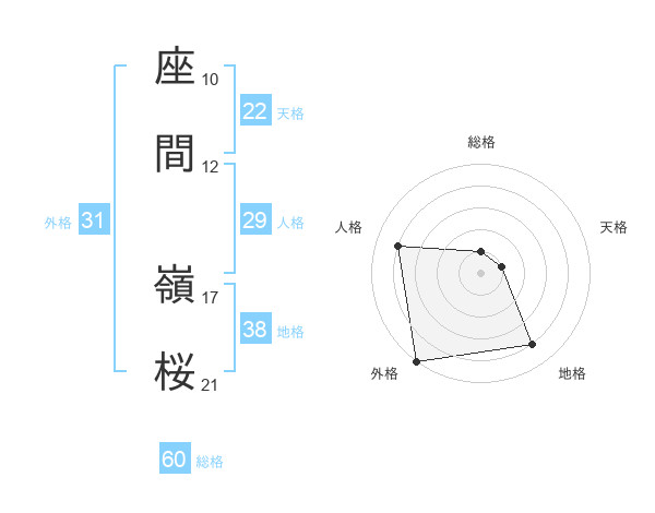 座間 嶺桜さんの外格は31画の5点!