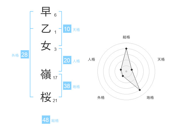 早乙女 嶺桜さんを姓名の画数から五運を鑑定