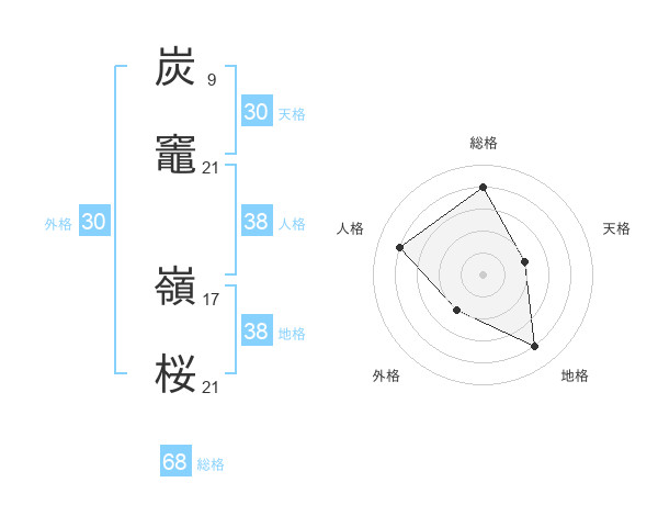 炭竈 嶺桜さんの名前の鑑定結果は!