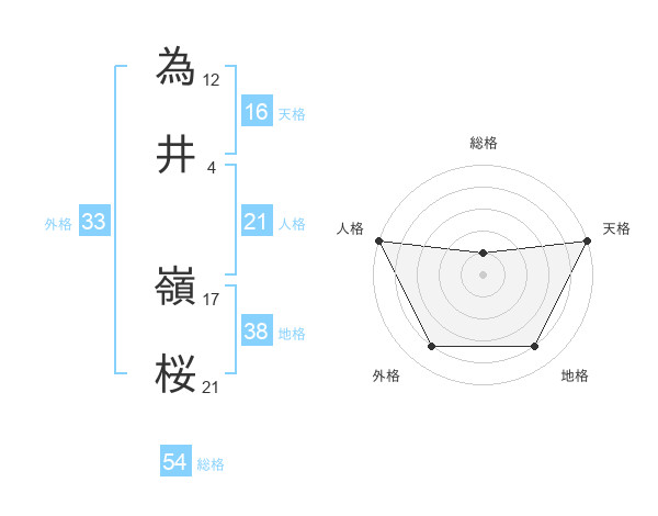 為井 嶺桜さんを姓名の画数から五運を鑑定