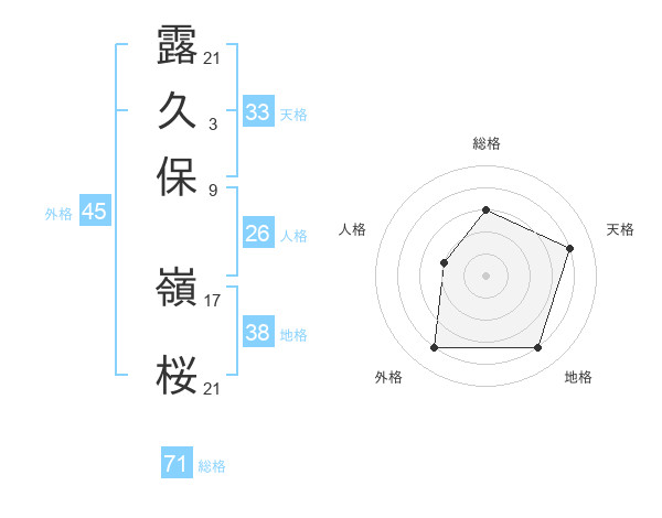 露久保 嶺桜さんの総格は71画の3点!