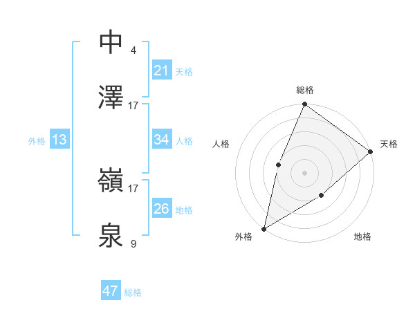 中澤 嶺泉さんを姓名の画数から五運を鑑定