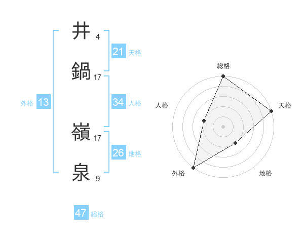 井鍋 嶺泉さんの総格は47画の5点!