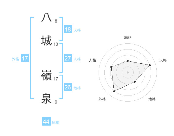 八城 嶺泉さんの天格は18画の4点!