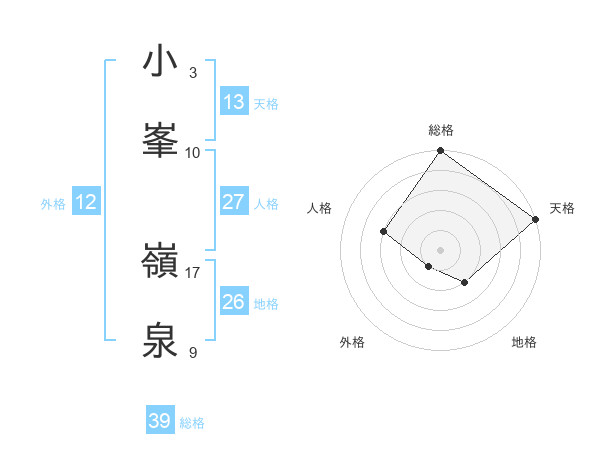 小峯 嶺泉さんを姓名の画数から五運を鑑定