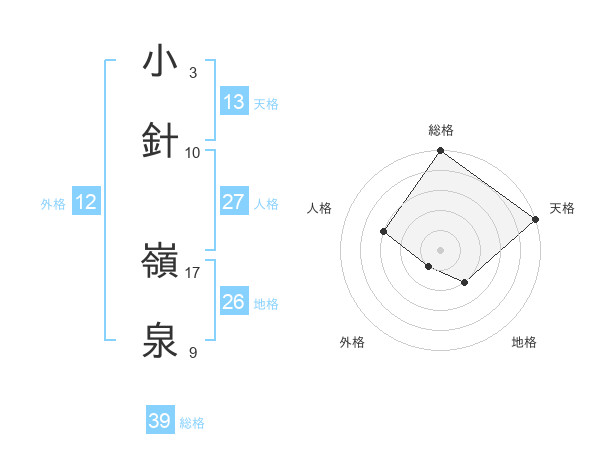 小針 嶺泉さんを姓名の画数から五運を鑑定
