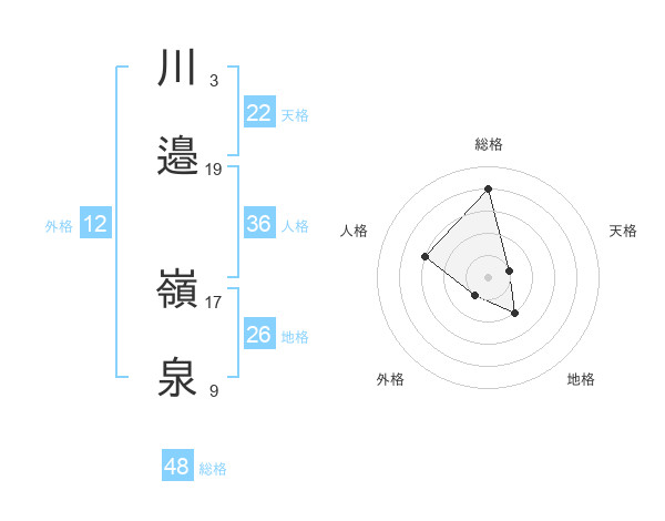 川邉 嶺泉さんの総格は48画の4点!