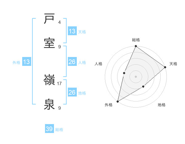 戸室 嶺泉さんの外格は13画の5点!