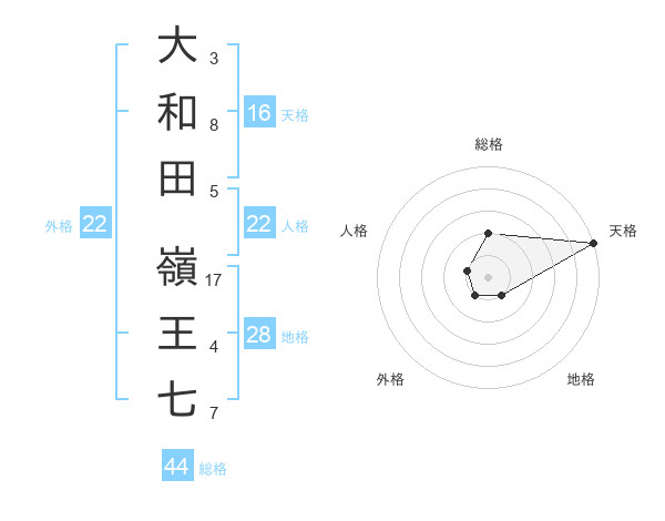 大和田 嶺王七さんの総格は44画の2点!