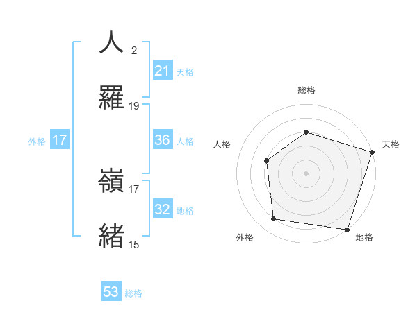人羅 嶺緒さんを姓名の画数から五運を鑑定