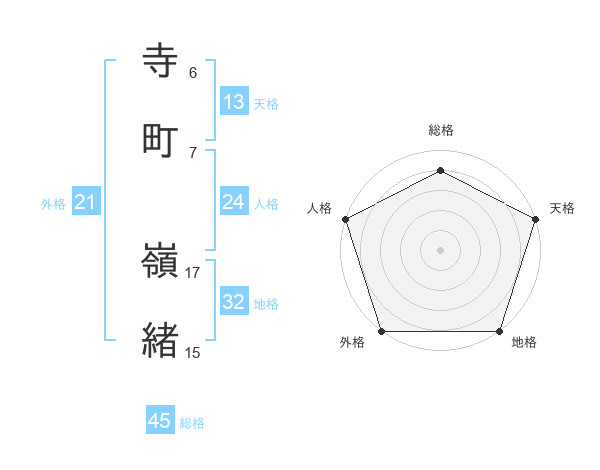 寺町 嶺緒さんを姓名の画数から五運を鑑定