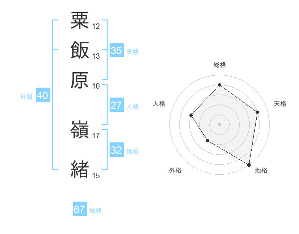 粟飯原 嶺緒さんを姓名の画数から五運を鑑定