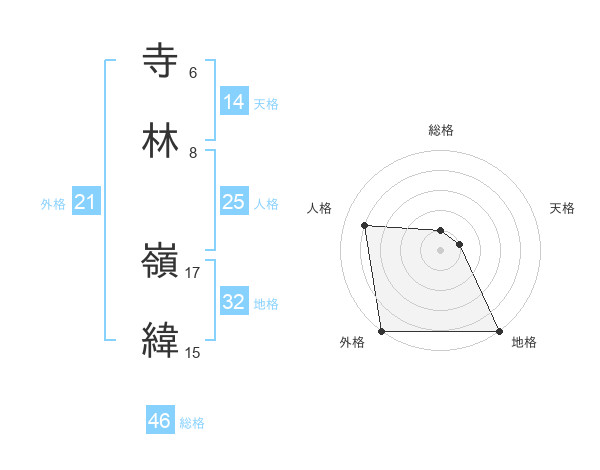 寺林 嶺緯さんを姓名の画数から五運を鑑定