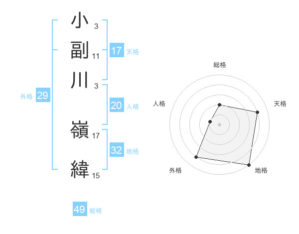 小副川 嶺緯さんの天格は17画の4点!