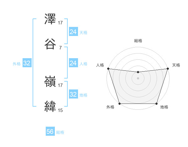 澤谷 嶺緯さんの総格は56画の1点!