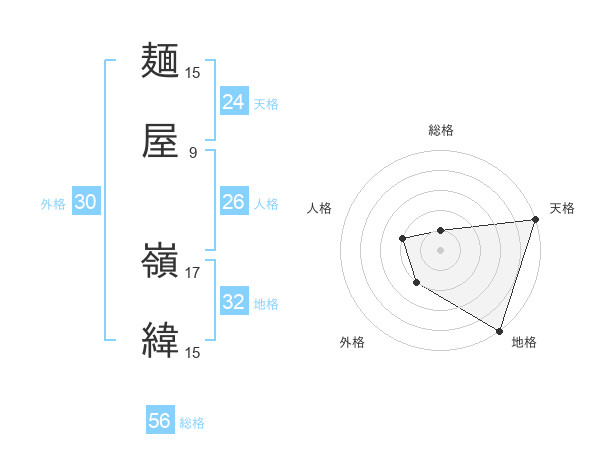麺屋 嶺緯さんの天格は24画の5点!
