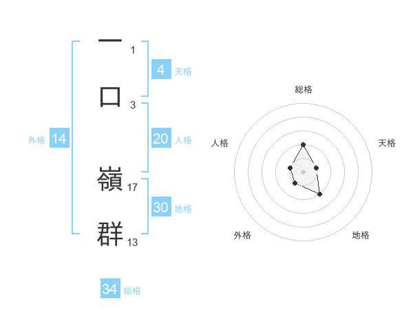 一口 嶺群さんを姓名の画数から五運を鑑定