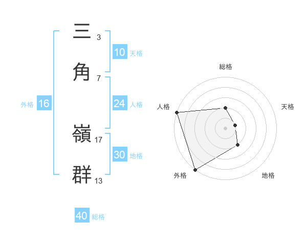 三角 嶺群さんを姓名の画数から五運を鑑定