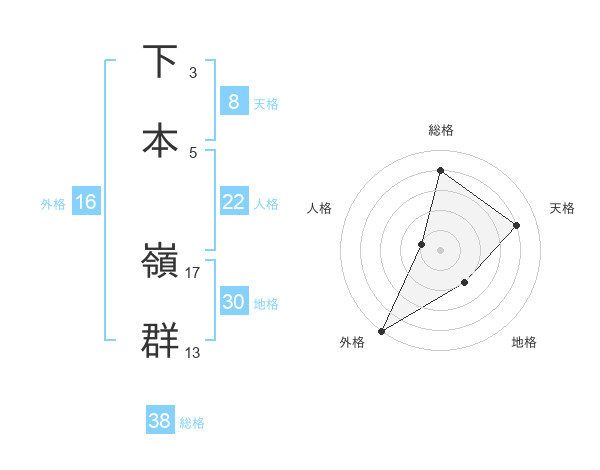 下本 嶺群さんを姓名の画数から五運を鑑定