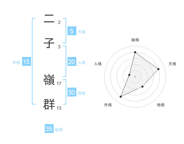 二子 嶺群さんの総格は35画の4点!