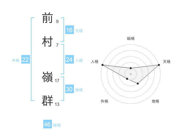 前村 嶺群さんの天格は16画の5点!
