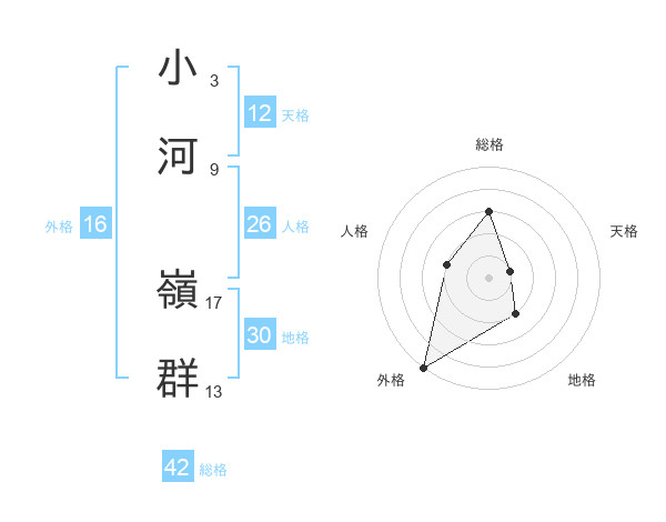 小河 嶺群さんの総格は42画の3点!