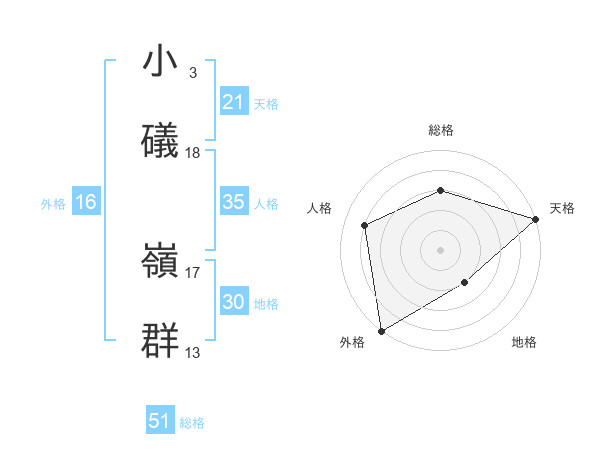 小礒 嶺群さんの総格は51画の3点!