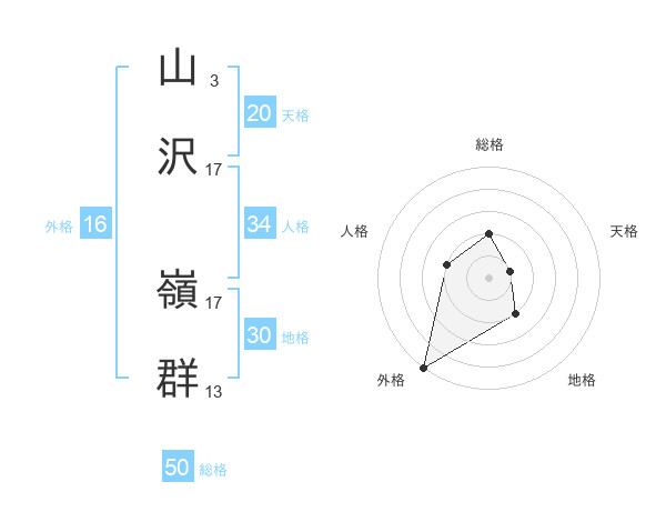 山沢 嶺群さんの総格は50画の2点!