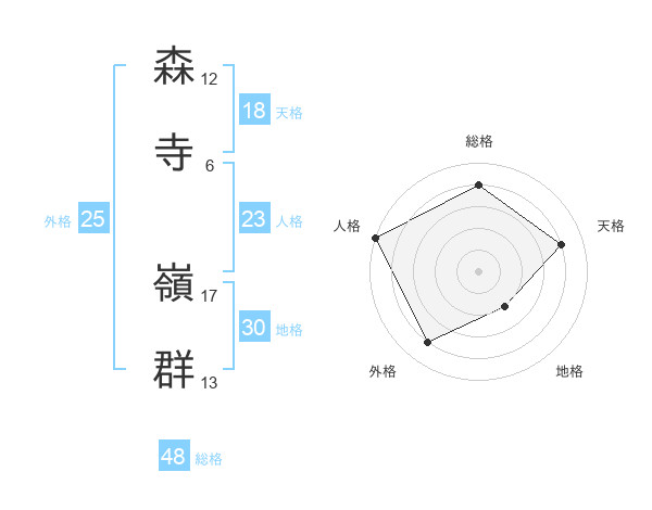 森寺 嶺群さんの総格は48画の4点!