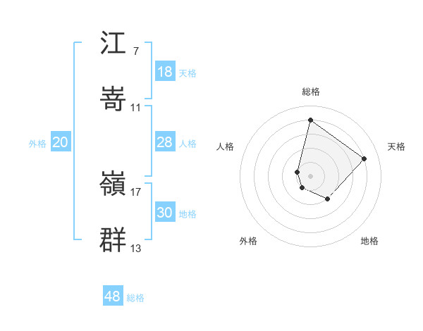 江嵜 嶺群さんの総格は48画の4点!