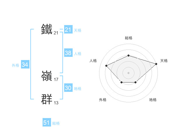 鐵 嶺群さんの総格は51画の3点!