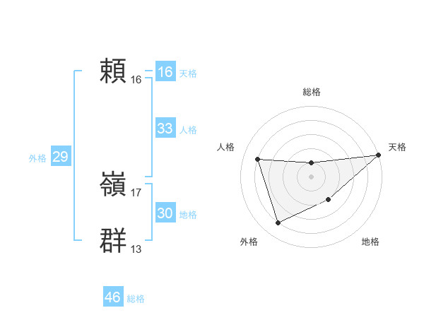 頼 嶺群さんの地格は30画の2点!