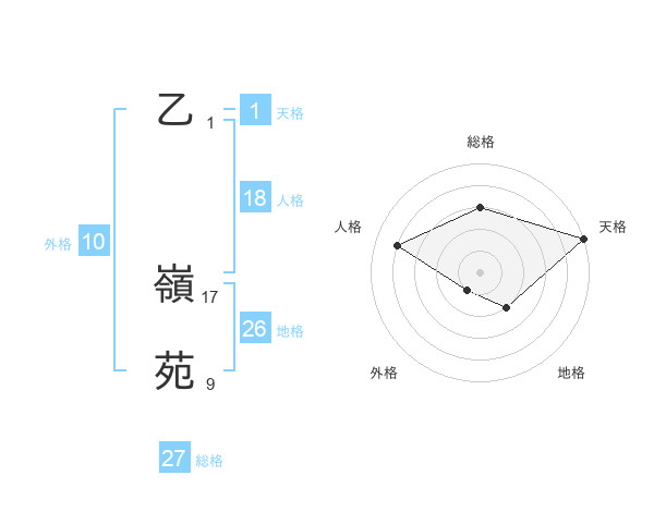 乙 嶺苑さんの天格は1画の5点!