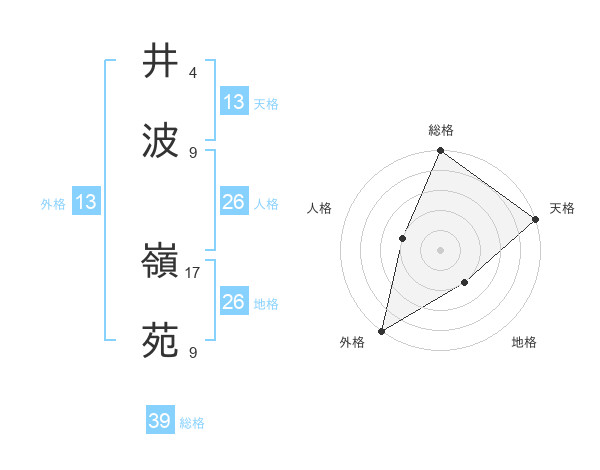 井波 嶺苑さんの外格は13画の5点!