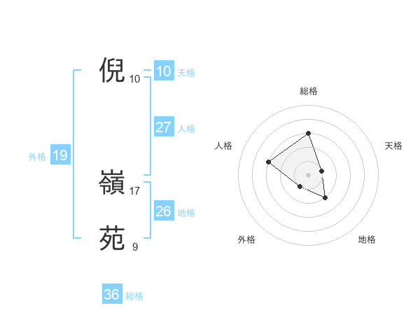 倪 嶺苑さんを姓名の画数から五運を鑑定