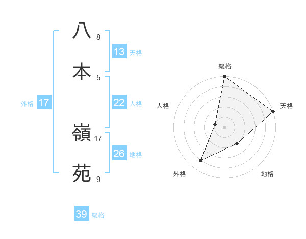 八本 嶺苑さんを姓名の画数から五運を鑑定