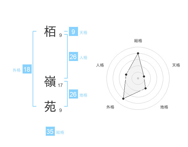 栢 嶺苑さんを姓名の画数から五運を鑑定