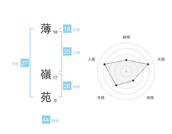 薄 嶺苑さんの総格は44画の2点!