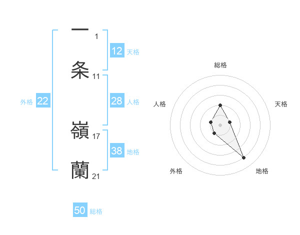一条 嶺蘭さんを姓名の画数から五運を鑑定
