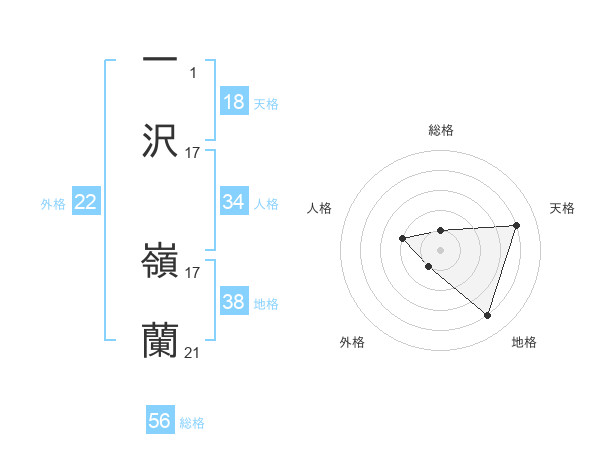 一沢 嶺蘭さんを姓名の画数から五運を鑑定
