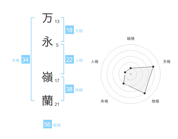 万永 嶺蘭さんを姓名の画数から五運を鑑定
