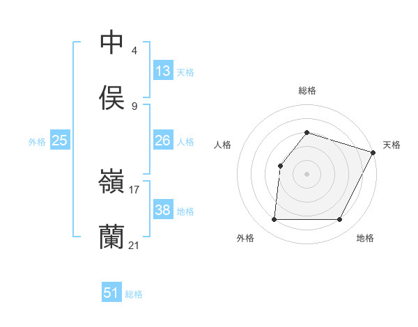 中俣 嶺蘭さんを姓名の画数から五運を鑑定